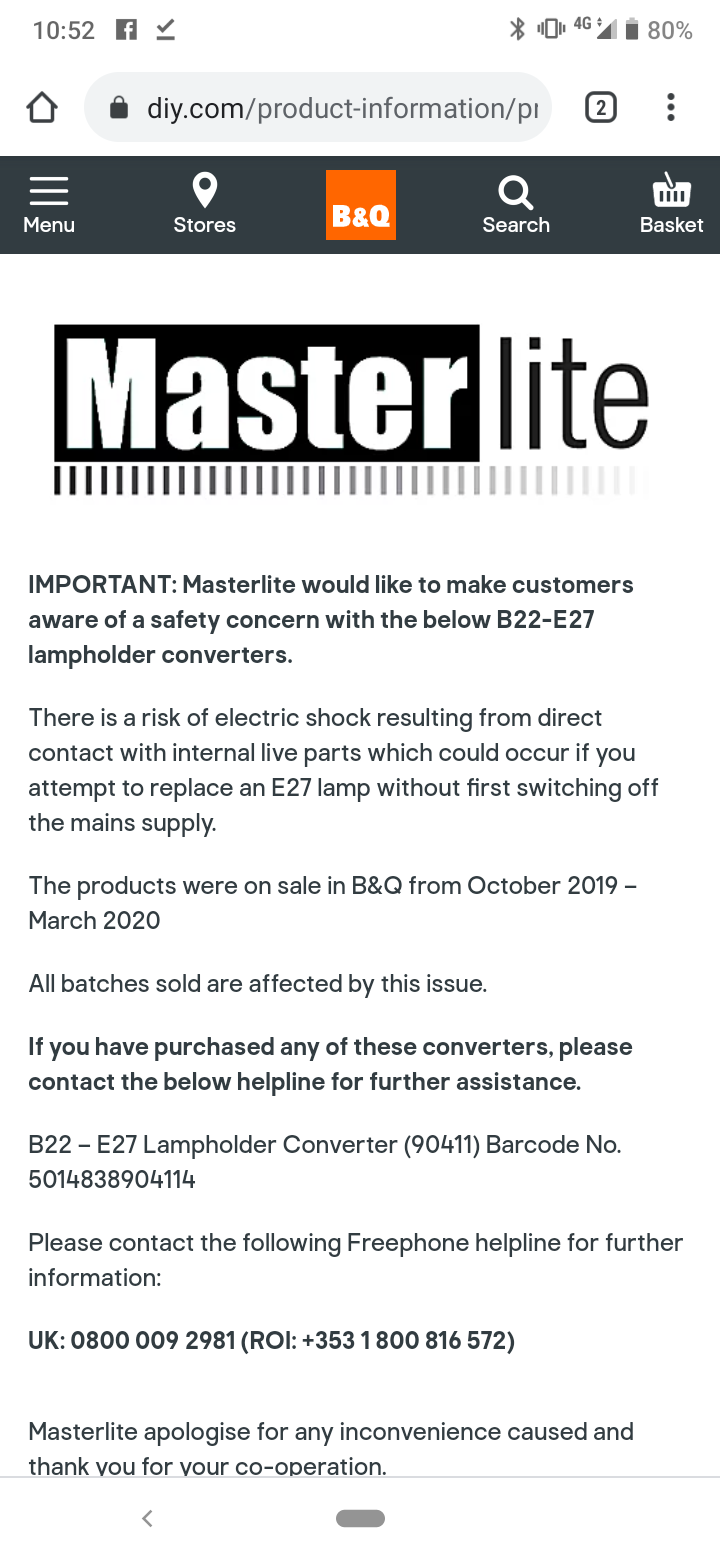 Plymtom wrote: Tue Mar 09, 2021 9:46 pm In another life I was an electrician, Yorkshire Andy is right ( A knowledgeable chap in general), I have to say, unless you know what you're doing and what not to touch, turn off the lighting circuit at the consumer unit when changing lamps especially ES ones, even if you only get a tingle you could easily fall off the ladders ;)