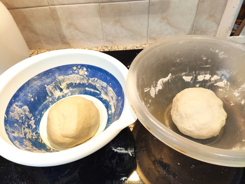 I must have got the wetness spot on, because neither dough stuck to my fingers.