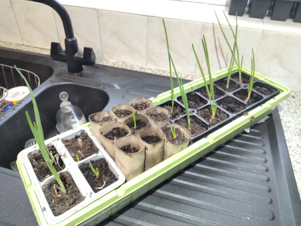 A Quick family photo.... Not bad for a 18 days since sowing. Notice how small the ones in the card tubes are compared to their sisters.