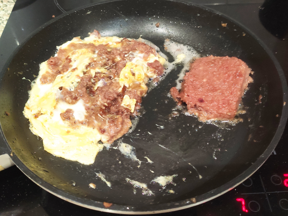 I thought I'd crisp up a few slices in the frying pan..... It doesn't happen. No amount of frying will crisp it up, it just becomes soft mush like a splat of wet tissue. Same for corned or canned beef.