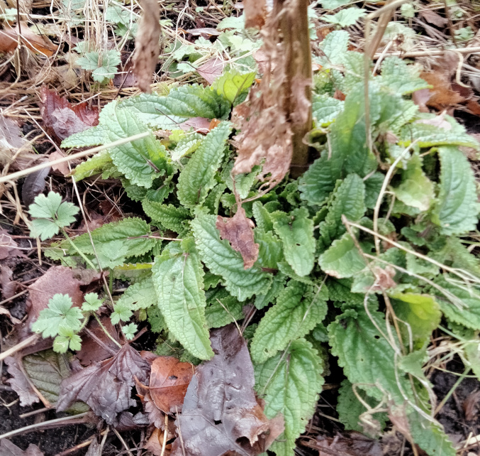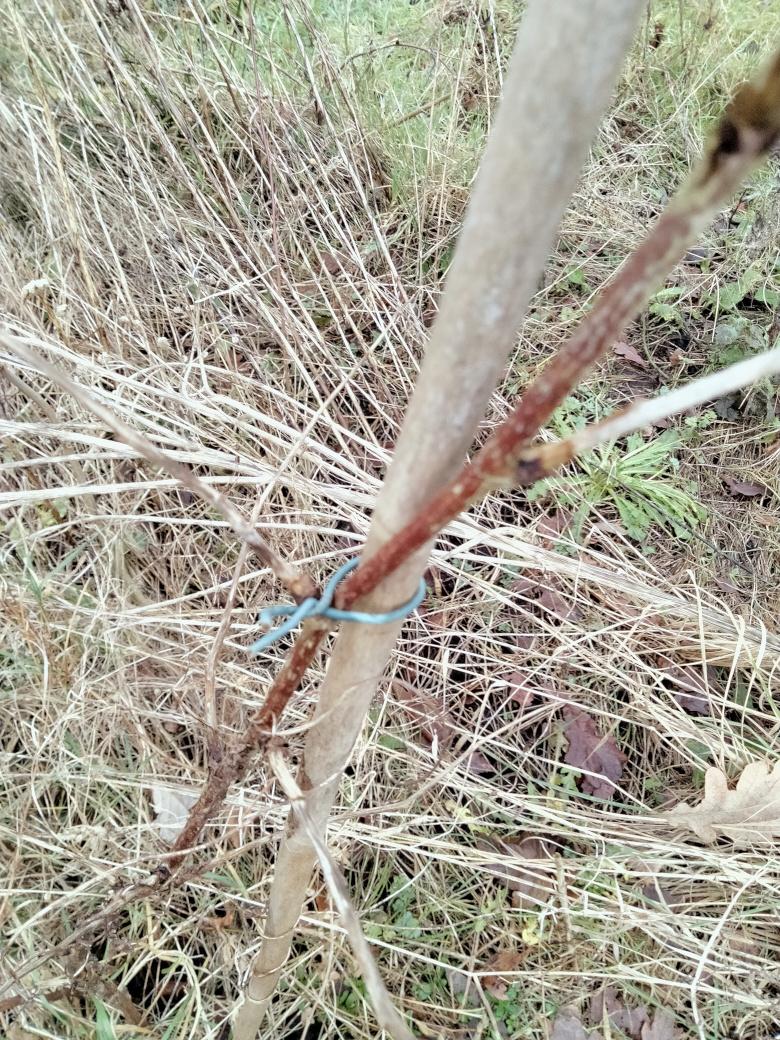 BUT. I spotted that some of the dead and derelict life-forms there had once been tied to canes. Some leaves look a bit familiar and non-weed like. Unfortunately I couldn't recognise much beyond a nettle, which stung me, and something which I THINK was a dock leaf which soothed my sting.
