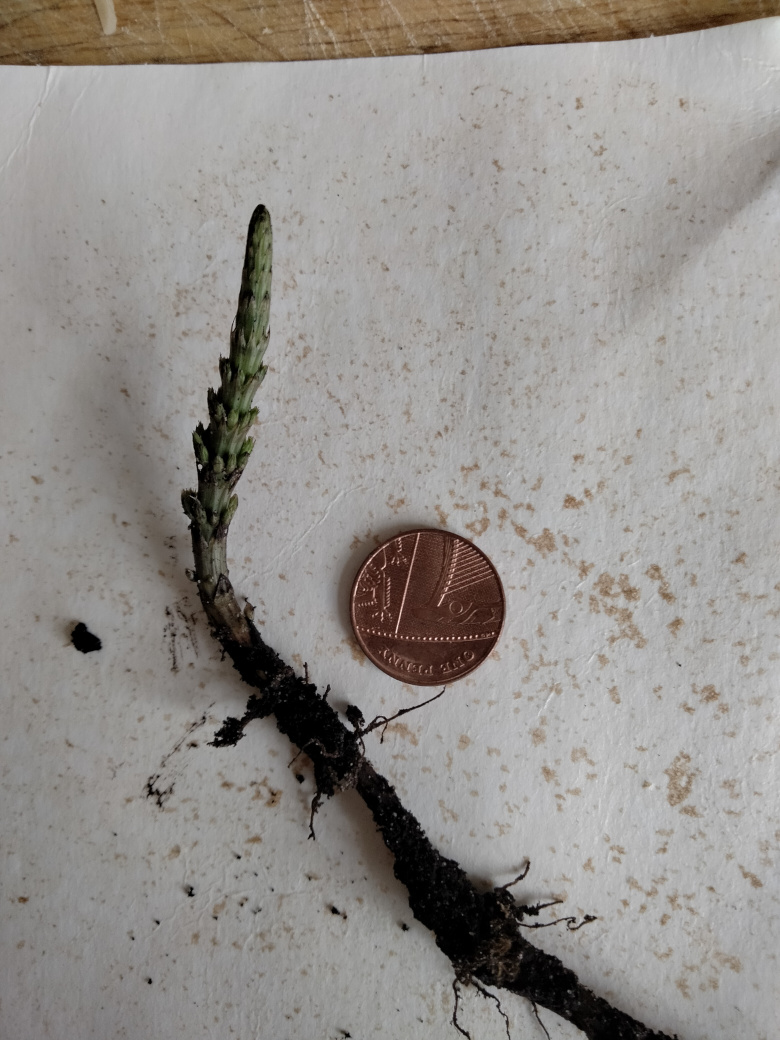 But when i lifted the tarp today, something had been prospering and sprouting through. It had long straight roots and i started digging it out thinking its maybe marestail. But then a google image search suggested asparagus
