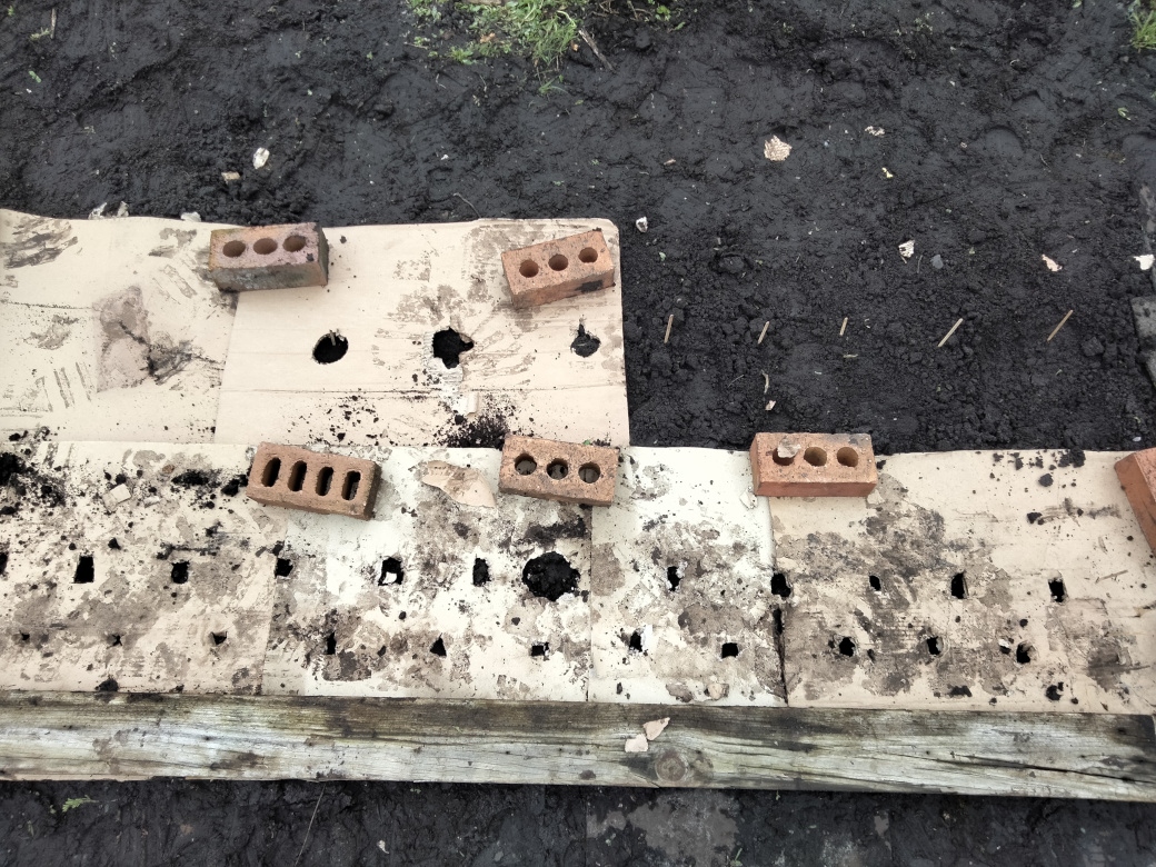 3: Sowed boltardy beetroot seeds direct through inch square holes in the card. Will they find their way out of the holes?*